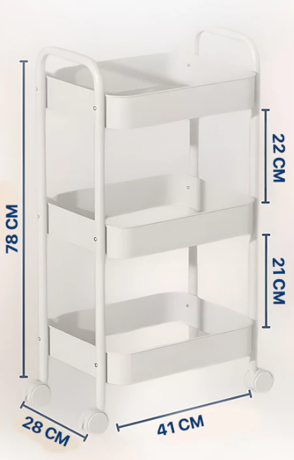 - Tipo: Carrinho multiuso com 3 prateleiras