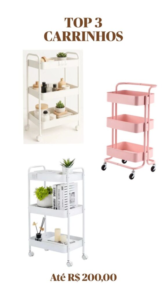 Esses carrinhos são peças versáteis que podem circular por qualquer ambiente, servindo como apoio na cozinha, no banheiro, na sala ou até mesmo no home office. Além de ajudarem na organização, trazem estilo e praticidade, sendo ideais para quem deseja manter o lar em ordem sem abrir mão do bom gosto. Vamos explorar como eles podem transformar o seu apartamento e conhecer três opções incríveis que se encaixam em diferentes estilos e necessidades.